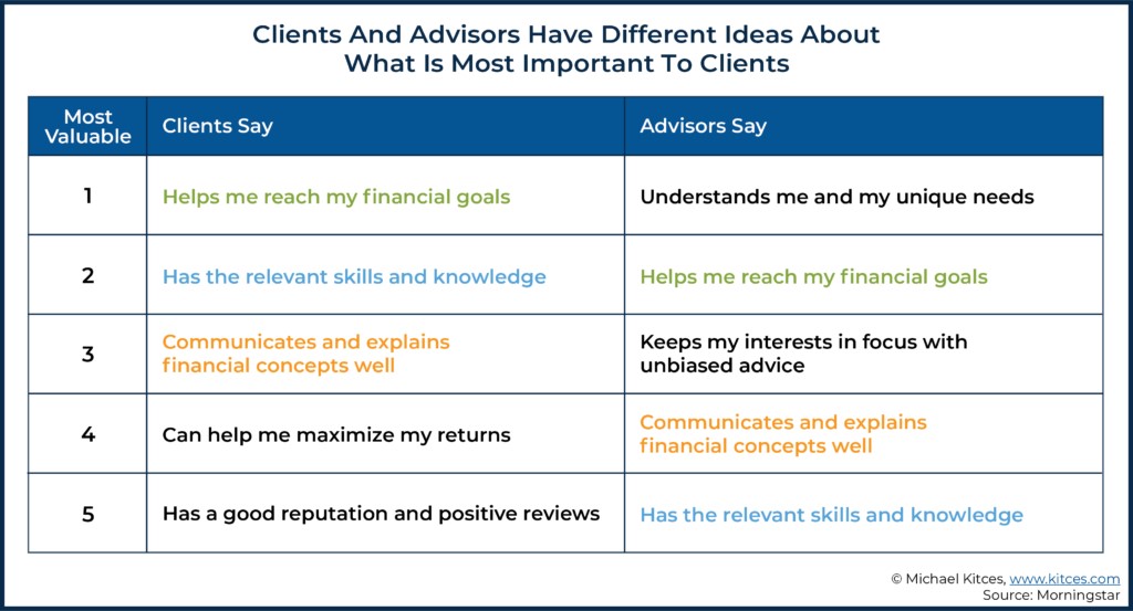 Advisors provide value to clients on different levels. Recent research from Morningstar suggests a gap between what clients say they value from their advisors and what advisors believe their clients value.